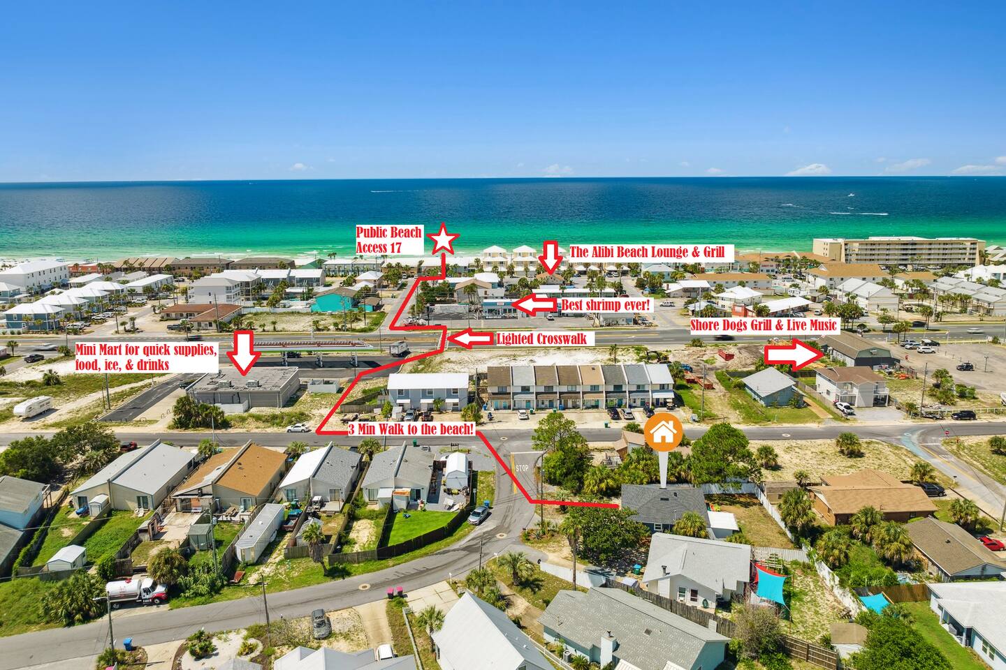 The Basic Beach House is conveniently located in a beautiful residential area, yet it's close enough to the action to walk to the beach, restaurants, bars, stores and attractions. You can also hop on one of our 2 beach cruisers to explore the area! Our closest beach access (#17) is located between areas with the large condo buildings, therefore it tends to be less crowded! A few of the walkable things in our neighborhood include: *Shore Dogs Grill (3-4 min walk) *Ali Baba Beach Lounge & Grill (7-8 min walk) *Capt. Jack's Family Buffet (4-5 min walk) *Pho Express Noodles & Bar (5-6 min walk) *Rick Seltzer Park - Public swimming beach with restrooms, patio tables, rinse stations etc. (8-9 min walk) *Tom Thumb Convenience Store & Gas Station (2 min walk) this place is seriously close and open 24 hours! By car: *St. Andrew's State Park (6 minute drive - 3 miles away) *Shipwreck Island Water Park (13 minute drive) *Wonderworks and Ripley's Believe it or Not (5 min drive) *Panama City Beach Winery (3 min drive) *Sea Screamer Dolphin Cruises - NOT TO BE MISSED!!! (6 min drive) *Pier Park - Shops, Restaurants, Attractions (18 min drive) *Sea Dragon Pirate Cruise (8 min drive) *Pineapple Willy's (15 min drive) We love our beautiful neighborhood and are excited to share it with you!