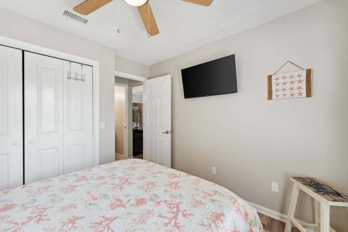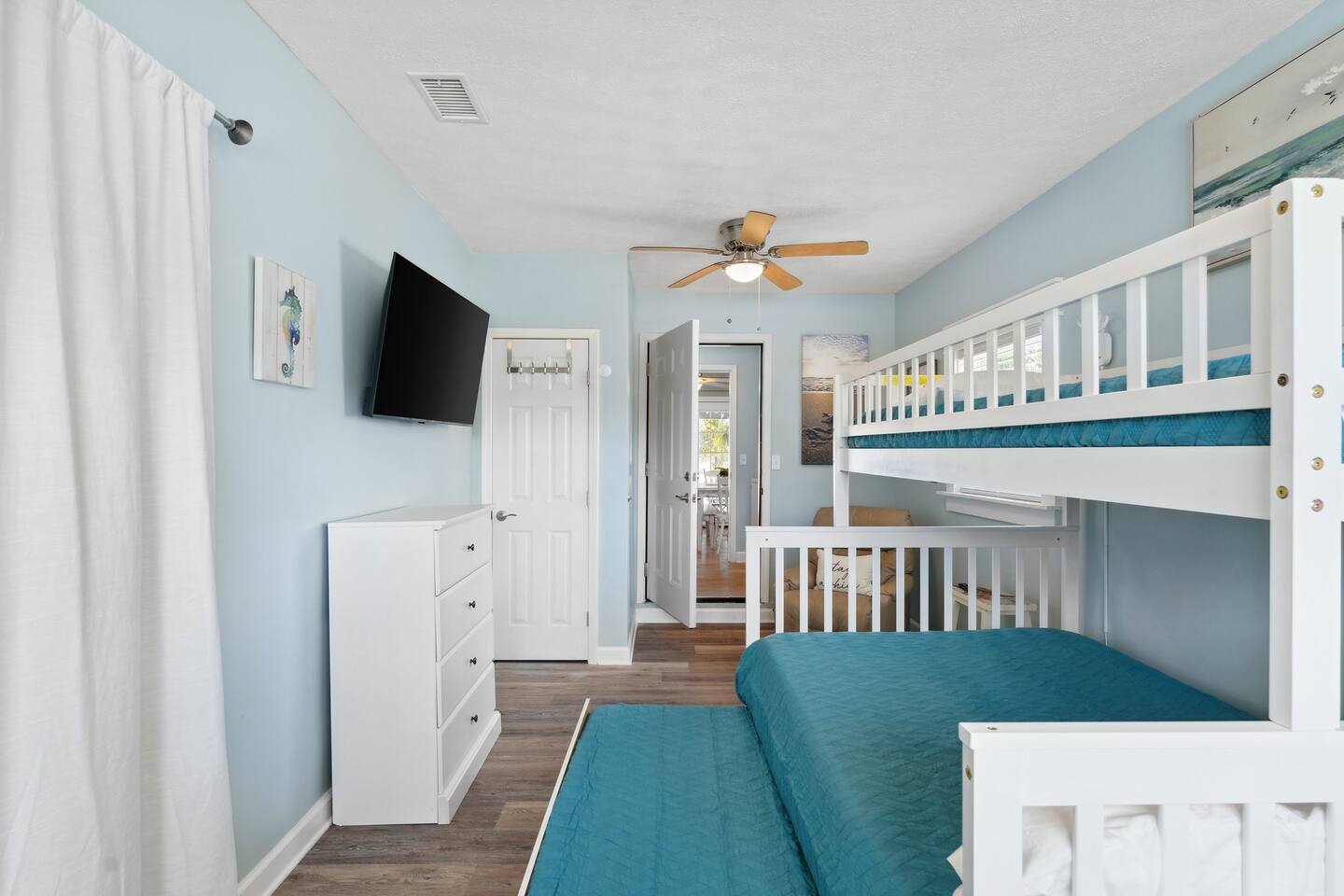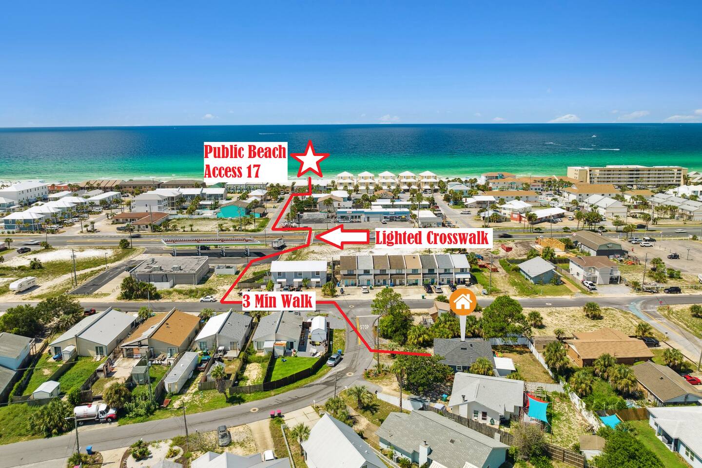 Welcome to the best overall location in Panama City Beach! * 3 min walk to beach *Walk to local restaurants, bars, mini-mart, attractions *Outdoor shower, grill, firepit *Beach wagon, chairs, sand toys, boogie boards, cooler, umbrella *2 beach cruisers *Sleeps 8 *Fully functional kitchen *Covered outdoor porch This cute & cozy home is the perfect place to relax & enjoy your vacation. The location is unbeatable! Close to the action yet also private. Guaranteed fun! We would love to host you!